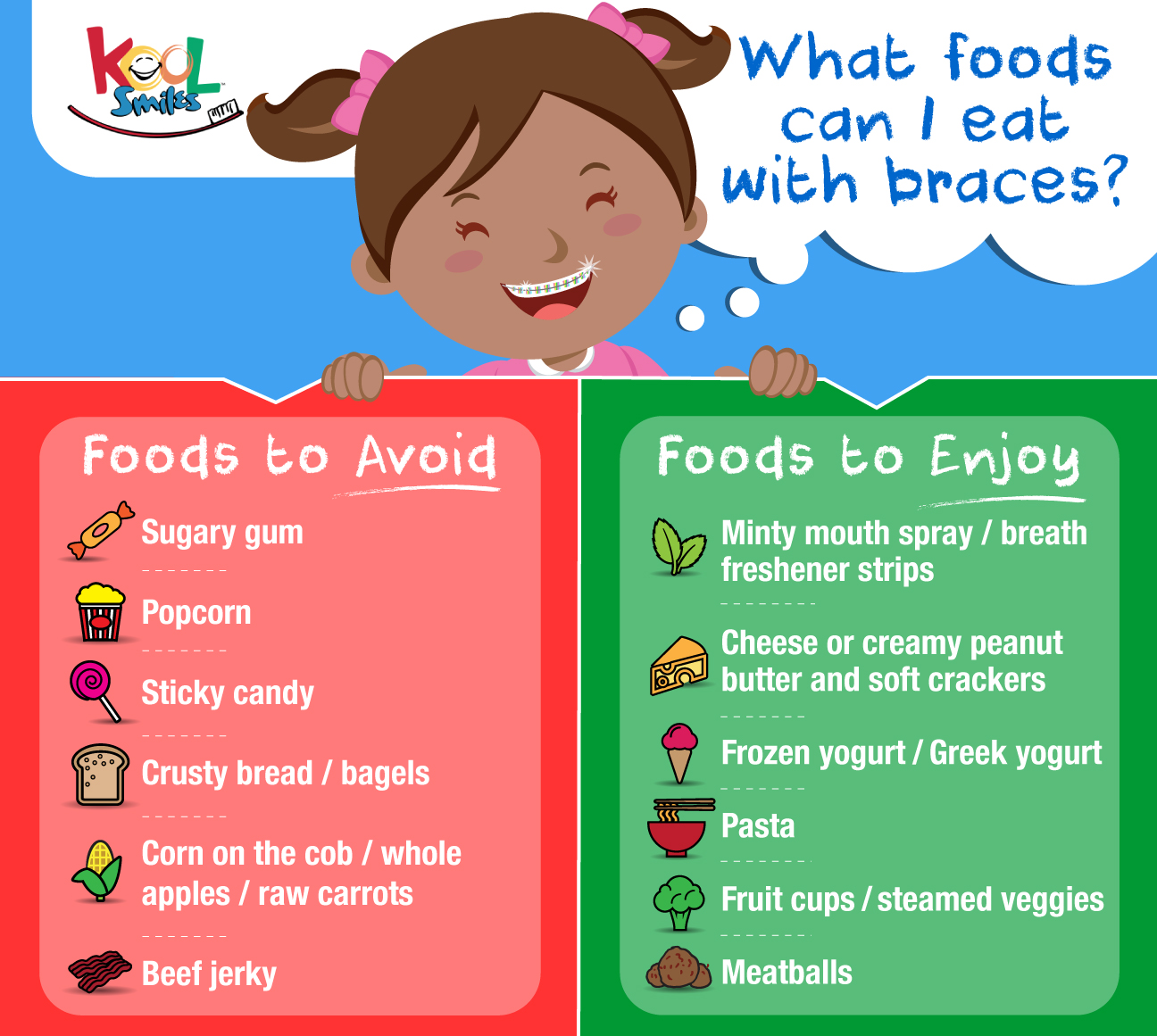 Here are some of the foods that your child should and shouldn’t eat with lingual braces: